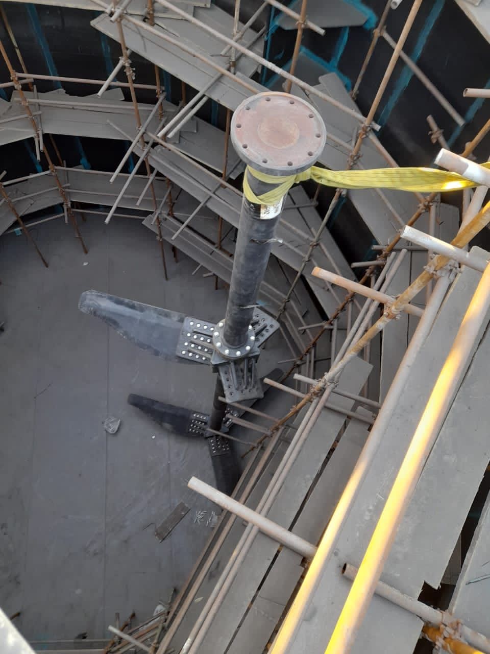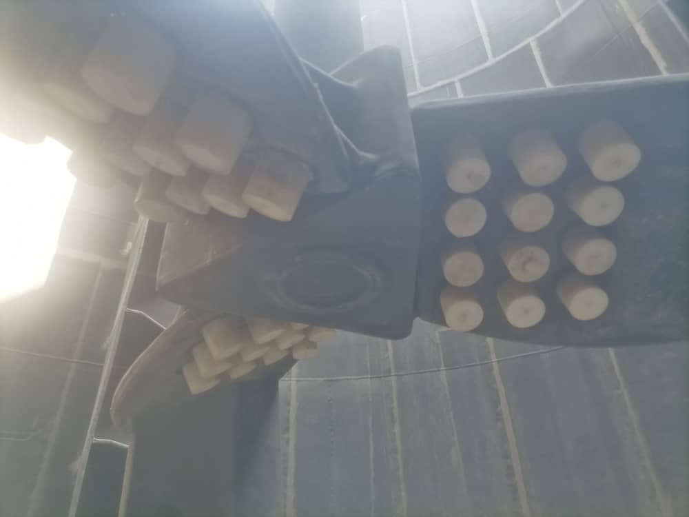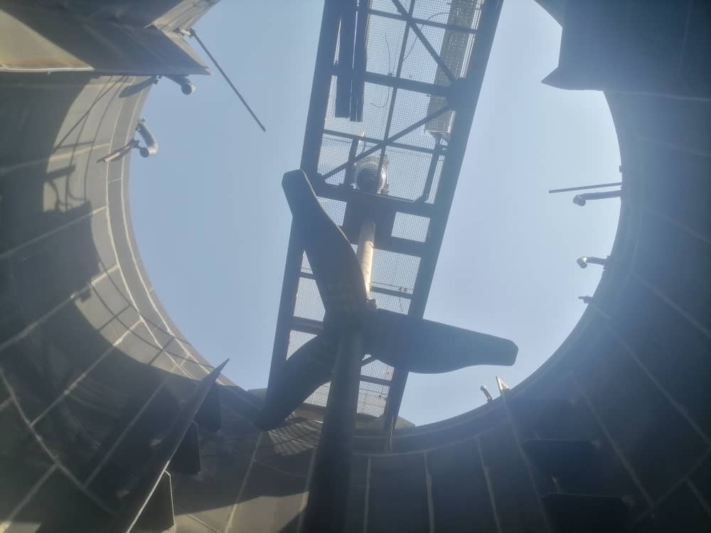 Suspension impellers These impellers are generally used to suspend a type of slurry and have very high energy efficiency. These mixers are generally used in 3 sets of mixers, and mixer sizes from 1.7 to 6.6 meters in diameter have been produced in this company. This type of impeller is used when the retention time of the slurry inside the tank is not important and it is only necessary to ensure suspension of the slurry. These types of impellers are designed in two types of hydrofoil and conventional HE3, and sometimes it stabilizer sweeping blade is added for process reasons.